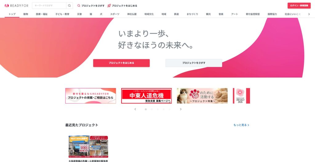 READYFORは、日本の社会課題クラウドファンディングを代表するサービスです。