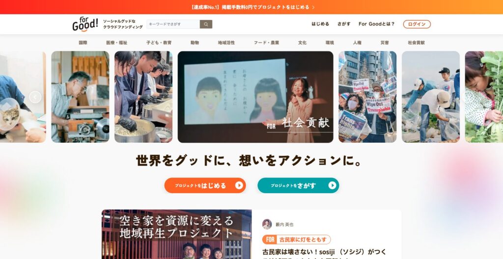 For Goodは社会課題特化型のクラファンです。