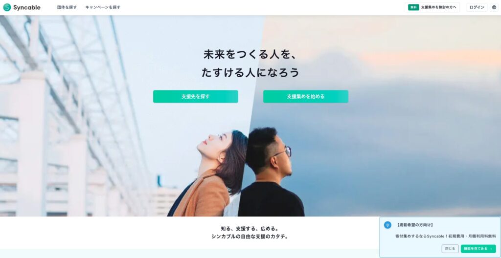 SyncableはNPO向けの寄付プラットフォームで、