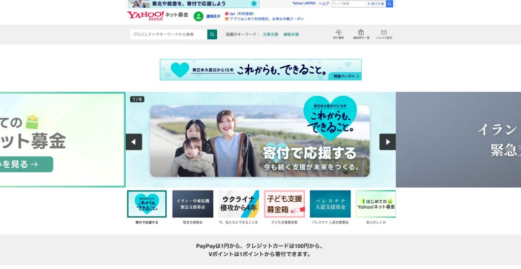 Yahoo!ネット募金は、日本で最も知名度の高い寄付サイトの一つです。